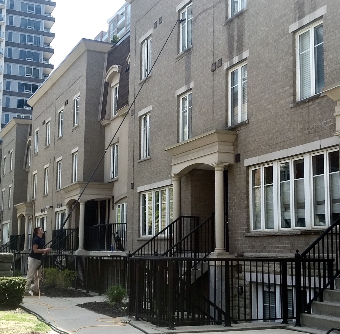 Here is Jordan keeping the windows cleaned at a Town Home complex in Liberty Village.