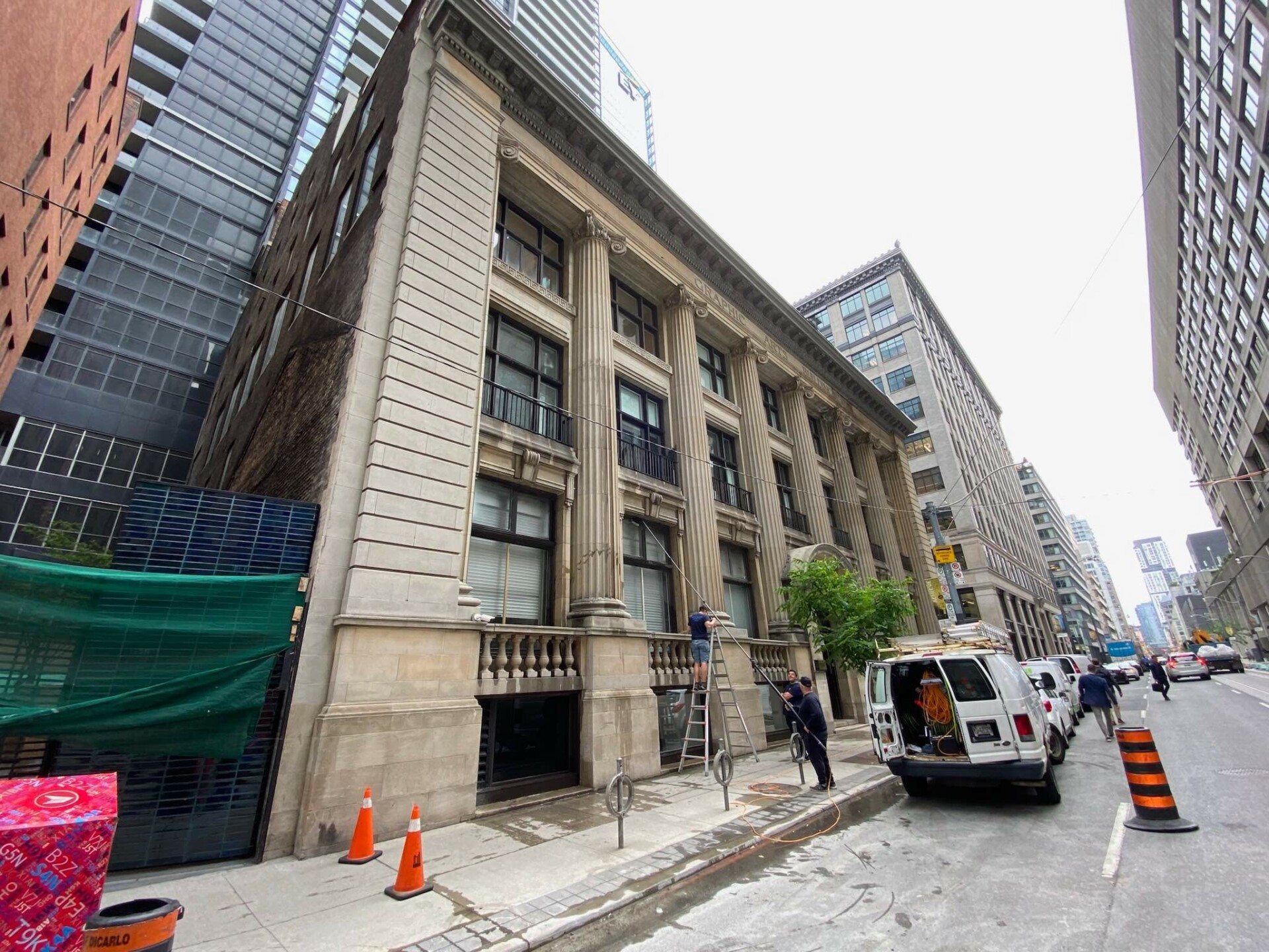 Window Cleaning Challenges: 73 Richmond Street West’s bustling downtown location presents unique challenges for commercial window cleaning. Heavy city traffic, both pedestrian and vehicular, and the building’s proximity to other downtown businesses require careful coordination and timing to ensure minimal disruption. Additionally, the building’s historic nature demands a gentle touch to preserve its architectural integrity.