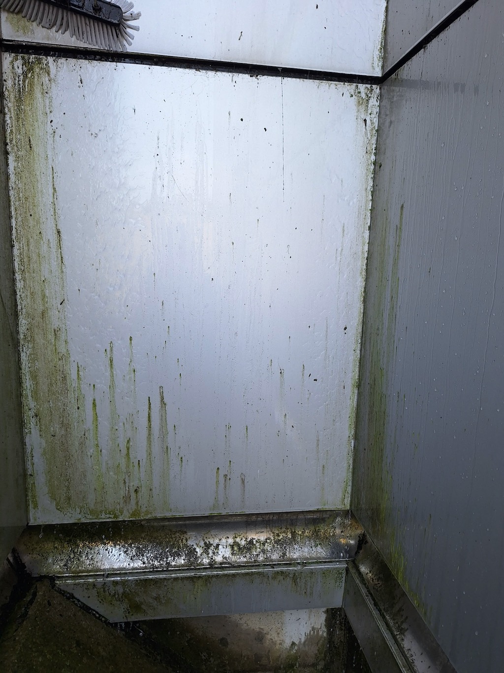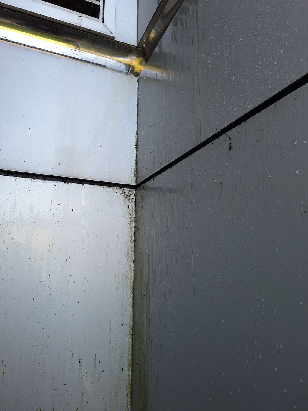 Our team used a combination of water-fed pole systems and traditional squeegee methods to ensure streak-free results on all windows. Due to the building’s architecture and coastal exposure near Lake Ontario, the metal cladding had developed a buildup of grime, salt, and oxidation. We carefully applied safe, non-abrasive metal cleaners to revive the panels and restore their original finish without compromising the surface integrity.